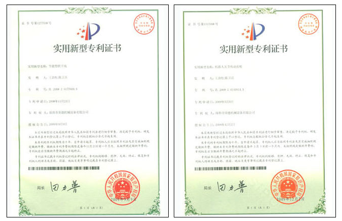 榮德機器人一直致力于自動噴涂行業(yè)的發(fā)展,20年來專注于自動噴涂設(shè)備的研發(fā)和生產(chǎn),在行業(yè)內(nèi)獨樹一幟,不斷開發(fā)新的產(chǎn)品,引領(lǐng)噴涂行業(yè)自動化升級。榮德每年投入銷售額的6%以上作為研發(fā)費用,目前為止,獲得20多項國家專利,以及各類獎項。下面為榮德相關(guān)專利的簡單介紹。