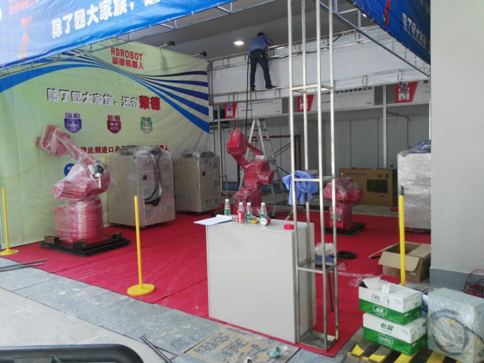 為了展示我們的機器人,給大家留個好印象,從決定參加展會后,就進入積極準備階段,重新設(shè)計的宣傳冊等相關(guān)資料。就在昨天,我們的同事不辭辛苦,頂著40多度高溫,前去搭建會場,現(xiàn)會場所有東西到到位,噴涂機器人設(shè)備也已安裝好了,就等您的到來!