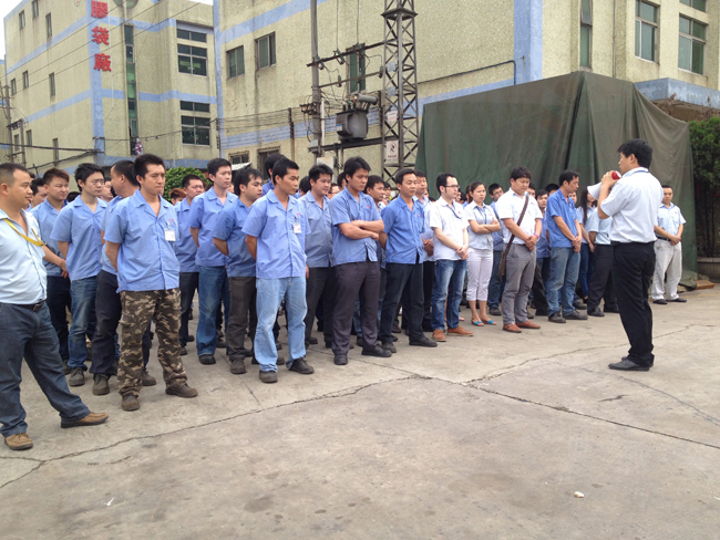 2014年4月26日17點整,消防警鈴響起,義務(wù)消防隊疏散組成員在第一時間分別趕到公司辦公樓各樓層以及宿舍內(nèi),在他們的喊話提醒下將所有員工于120秒內(nèi)有序地疏散到廠外的安全區(qū)域,在整個過程中,秩序井然、無人員受傷和擁擠踩踏的情況。要知道此次逃生演習(xí)的過程員工是不知情的,僅疏散組成員提前開會討論過。逃生演習(xí)拉開了此次消防演習(xí)的序幕。
