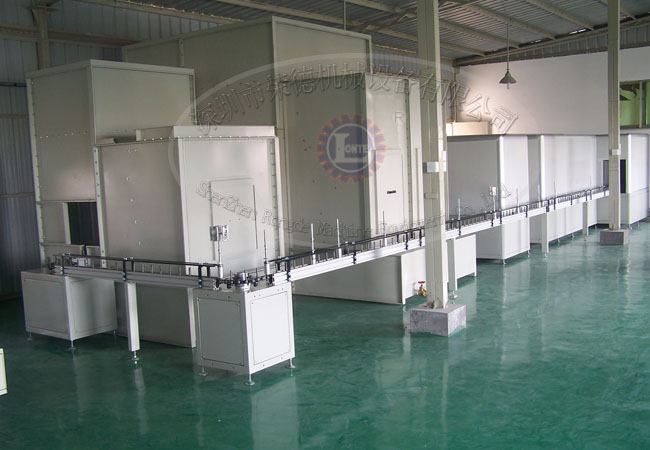 手機外殼噴涂線(spindle噴涂線): 靜電除塵、噴涂、烘干全自動流水線作業(yè),用人少,適合批量連續(xù)生產,產量高、涂層面均勻;全封閉無人操作噴涂作業(yè);生產合格率高,品質穩(wěn)定;輸送鏈條與軌道接觸點配置軸承配合精準的軌道,運轉時輕快順暢、平穩(wěn)不抖動。