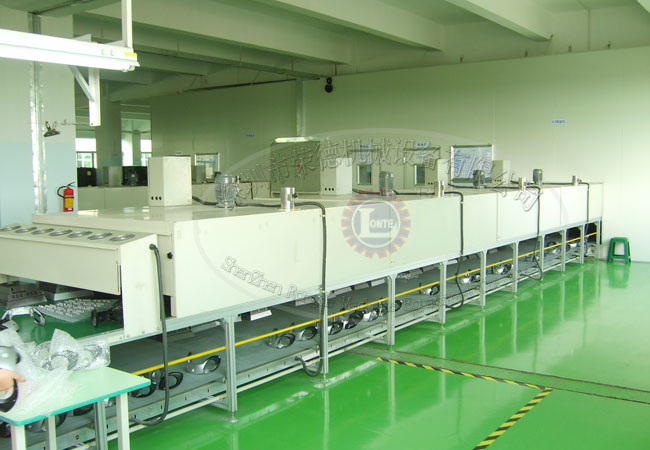 噴漆烘干流水線技術優(yōu)勢:該裝置反射鏡采用聚光型冷鏡,燈下加裝石英玻璃板,可有效降低被照物表面溫度;變頻無級調(diào)速,保證傳送平穩(wěn);觸摸屏微電腦自動控制,實現(xiàn)人機對話;每套UV系統(tǒng)獨立控制,依生產(chǎn)開啟燈管數(shù)量;每支燈設累計工作計時器,方便掌握燈管工作時間和老化程度;透明視窗,工作時可以觀察固化燈工作情況,并設開門保護裝置;燈管及燈罩可以上下調(diào)整。